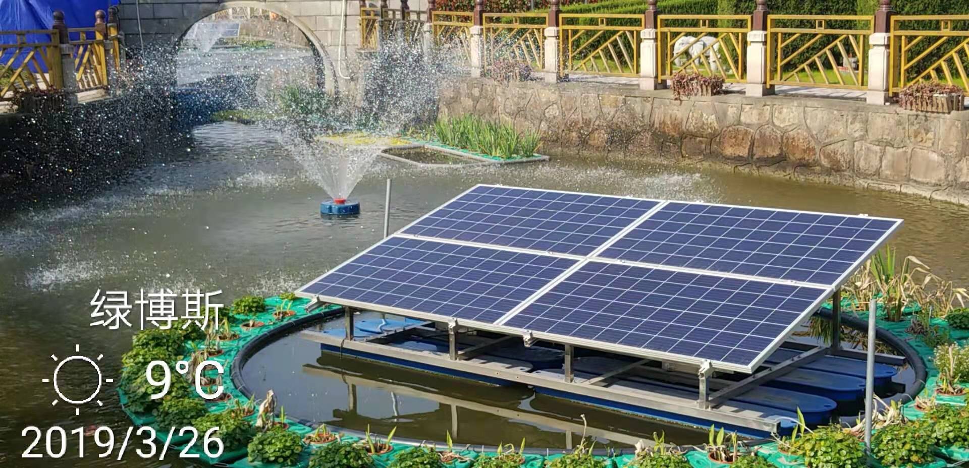 上海嘉定區5臺太陽能涌浪安裝現場--綠博斯增氧機